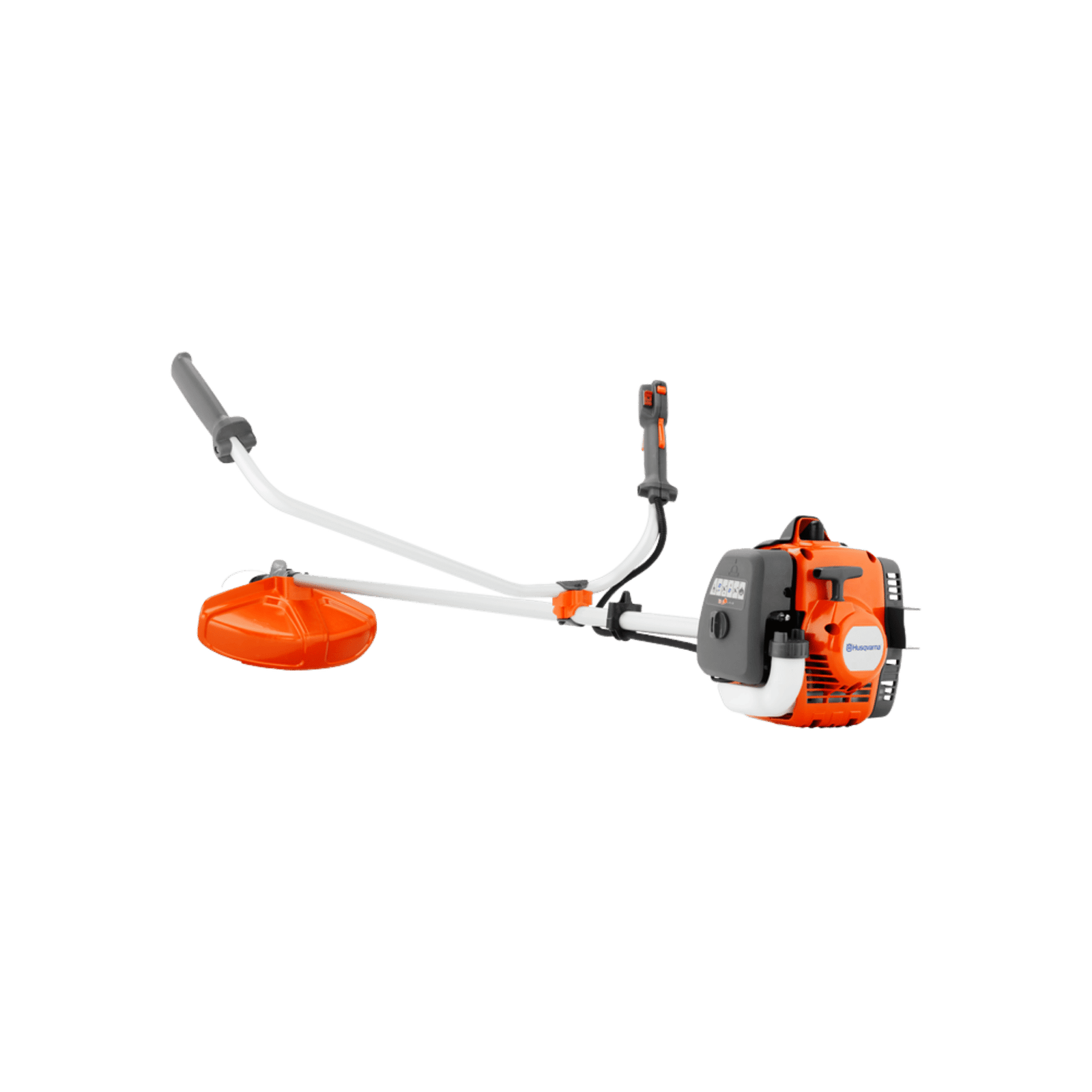 Husqvarna 129R is a brushcutter equipped with a powerful 27 cc engine that ensures efficient cutting and clearing. The set includes both a trimmer head and a grass blade, enabling a wide range of tasks to be carried out. The Smart Start® function provides quick and easy starting, while the stop switch automatically returns to the on position. The 129R model is also equipped with a double harness, a combination guard, and a comfortable bullhorn handle.