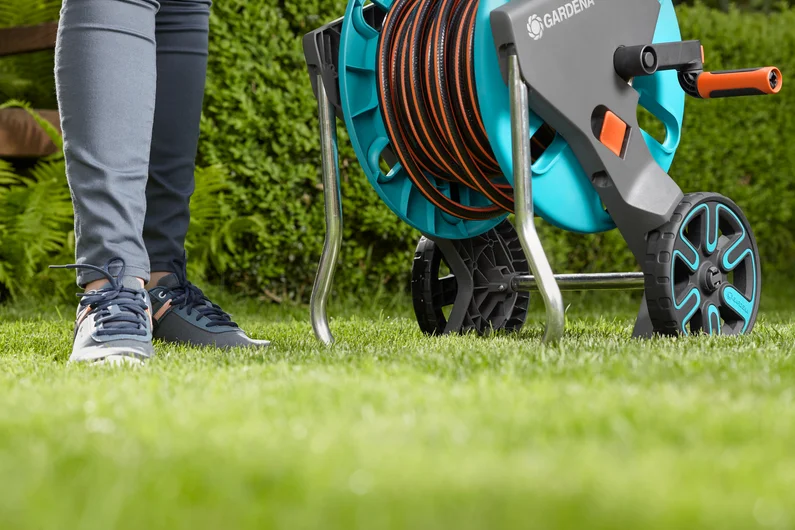 ეს მოწყობილობა საშუალებას მოგცემთ კომფორტულად და სივრცის დაზოგვით შეინახოთ სარწყავი შლანგი. ერგონომიული სახელურის და რბილი პლასტმასის კომპონენტების წყალობით, ასევე მყარი გზამკვლევი უზრუნველყოფს შლანგის საიმედო შემოტრიალებას და მიბმას. შლანგი უკვე აღჭურვილია Original GARDENA System-ის ნაწილებით. ინოვაციური ყინვაგამძლე დიზაინი და გერმანიაში დამზადებული პროდუქტის 5 წლიანი ქარხნული გარანტია მაქსიმალურ ხარისხს უზრუნველყოფს.