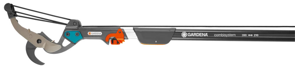 GARDENA combisystem-ის ლურსმნიანი ტოტის საჭრელი იდეალურია ხმელი და მტვრევადი ტოტების მოსაჭრელად მიწიდანვე, მაღალი ადგილებიდან.