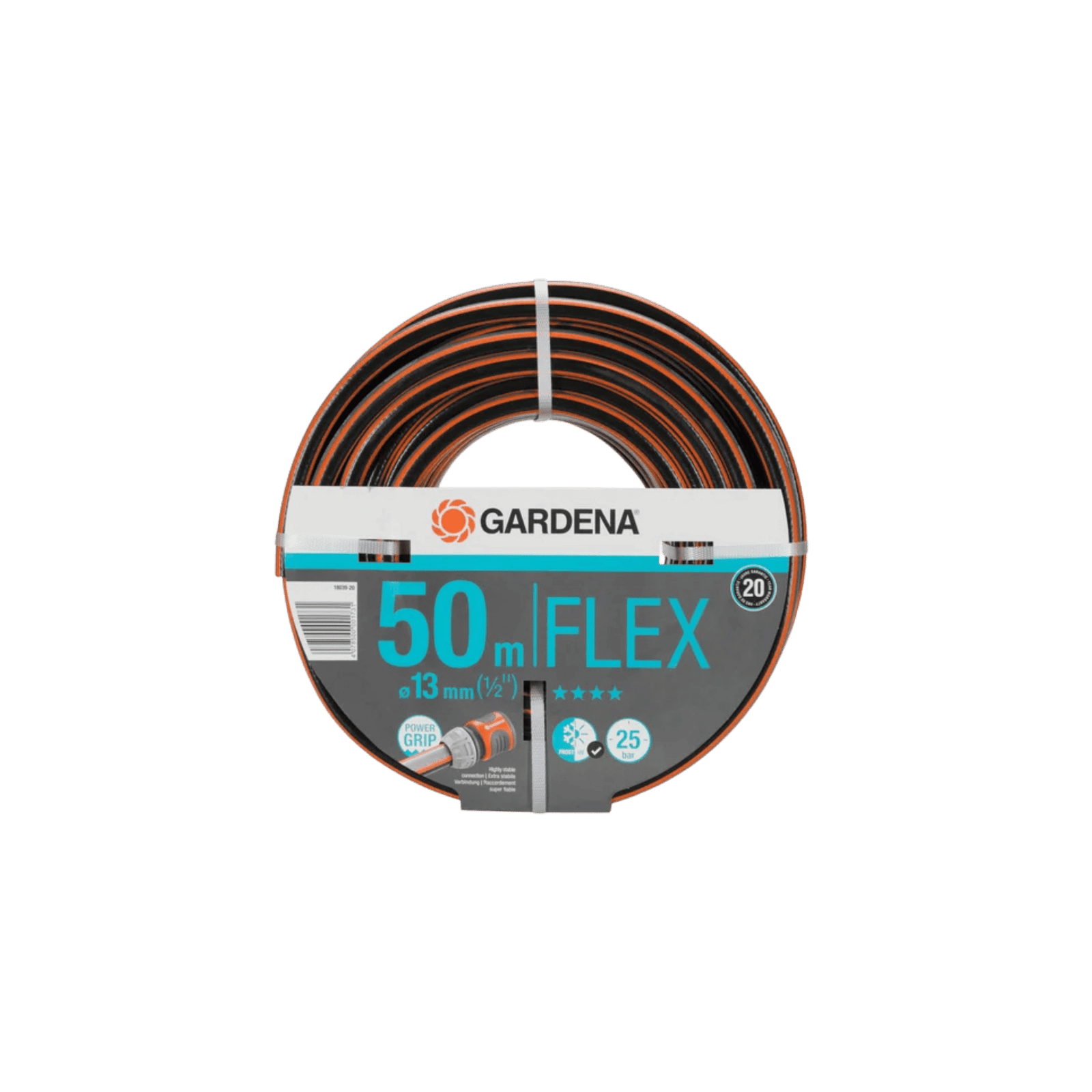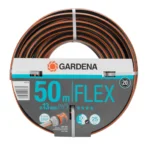 The GARDENA Comfort FLEX hose has a length of 50 m and a diameter of 13 mm (1/2″). It is ideal for reliable watering of plants in the garden. The hose retains its shape and remains flexible, while its high-quality construction virtually prevents twisting and kinking. The Power Grip profile ensures a secure hose connection and optimal grip with connectors or drainage elements. Resistance to ultraviolet radiation and frost makes it suitable for outdoor use all year round. Its thick walls ensure long service life and withstand burst pressure of up to 25 bar. Made in Germany.