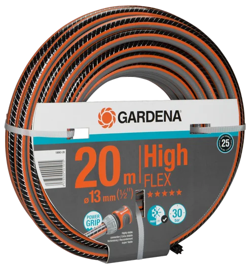 GARDENA Comfort HighFLEX შლანგი თავისი Power Grip პროფილით უზრუნველყოფს შლანგსა და შემაერთებელს შორის იდეალურ კავშირს. შლანგი კიდევ უფრო მდგრადია წნევის მიმართ, ვიდრე Comfort FLEX შლანგი და ინარჩუნებს ფორმას, ამავდროულად მოქნილი და მარტივი გამოსაყენებელია. ეს უზრუნველყოფს კომფორტულ გამოყენებას თქვენს ბაღში. საჭიროების შემთხვევაში, მისი რეგულარულად გაფართოება შესაძლებელია Original GARDENA System-ის ფიტინგებითა და შემაერთებლებით. ის არ შეიცავს მავნე ნივთიერებებს და მდგრადია ულტრაიისფერი სხივების მიმართ.
