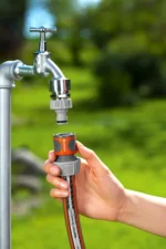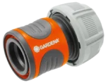 The GARDENA hose connector is a practical adapter that connects to the hose quickly and easily. Its end is protected against damage by a flexible ring. The Power Grip system ensures a firm and secure connection, while the specially shaped nut provides high water pressure. Soft plastic grip elements offer comfortable handling, even with wet hands. The connection can be released easily with a single movement. The connector is frost-resistant and suitable for year-round use. Manufactured in Germany.