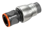 The GARDENA premium system hose connector stands out not only for its durable, high-quality metal-plastic construction, but also for many other practical features. The adapter allows you to connect the end of the hose quickly and conveniently. A solid metal clamping nut ensures high pressure in the hose, while the extended hose guide prevents the hose from slipping out. Designed to be frost-resistant, the premium connector is suitable for use throughout the entire year.