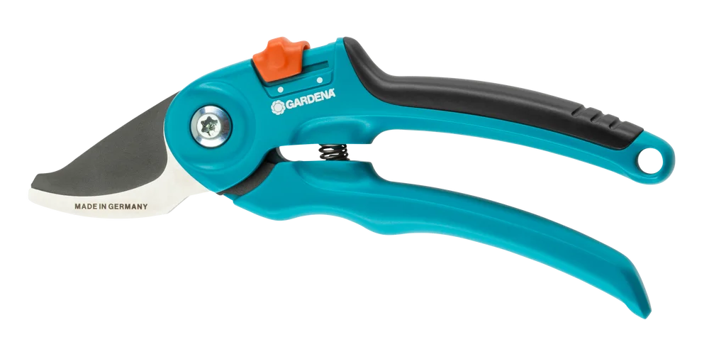 The GARDENA B/S garden pruner is ideal for pruning flowers, young shoots, and tree branches. The pruner has a cutting capacity of 20 mm. The ergonomically shaped ErgoTec handles, reinforced with fibreglass material, impress with their comfort and quality. The precisely finished, non-stick upper blade and the stainless steel lower blade operate according to the bypass cutting principle, ensuring accurate and clean cuts.