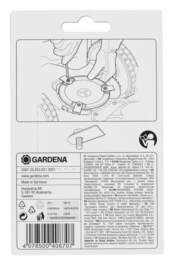 ეს ნაკრები შეიცავს 9 რეზერვ პირას და 9 დამჭერ საკრავს, რომლებიც მზადაა გამოყენებისთვის, როცა GARDENA-ს რობოტული ბალახის საჭრელების პირები უნდა შეიცვალოს.
