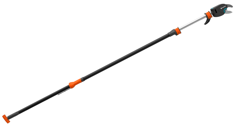 With the GARDENA StarCut 410 plus telescopic pruning shears, you'll become an expert in maintaining tall trees and shrubs. Thanks to the extendable telescopic handle, adjustable from 230 to 410 cm, you can easily and comfortably trim even the tree tops. The StarCut 410 plus pruning shears feature an internal tension strap and a compact cutting head, preventing the pruning shears from getting tangled in branches. The cutting angle, adjustable from the handle, of up to 200° allows you to trim all branches with perfect precision. The T-handle at the base ensures a secure grip and safe cutting right down to the base of the tree. Furthermore, the precision blades are coated with a non-stick coating, reducing resistance when cutting.