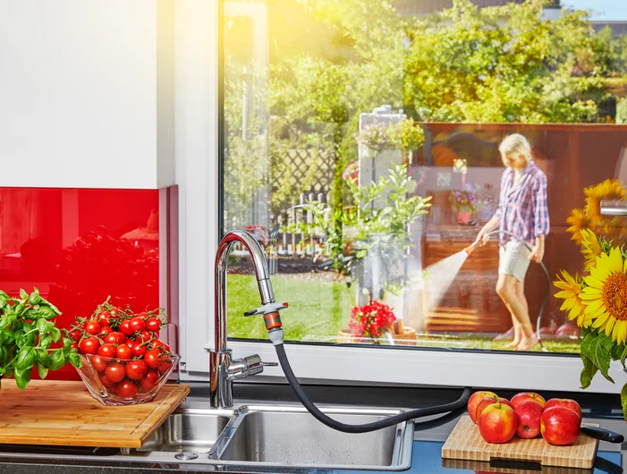 GARDENA-ს შიდა ონკანის შეერთება საშუალებას გაძლევთ, უარი თქვათ მძიმე წყლის კალათებით მიტანაზე და პირდაპირი შეერთებით მორწყათ ყვავილები, მცენარეები ან შხაპუნა აუზი აივანზე, ტერასაზე ან ვერანდაზე.