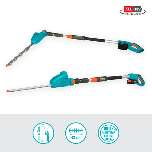 16 მილიმეტრამდე სისქის ტოტები ძალისხმევის გარეშე დაიჭრება; ოპტიმიზებული პირების გეომეტრია უზრუნველყოფს ეფექტურ და სუფთა ჭრას. 42 სანტიმეტრიანი პირების სიგრძით, თქვენ შეგიძლიათ სწრაფად მოჭრათ თქვენი ჰეჯირი მთელ სიგანეზე ფორმის მიხედვით.