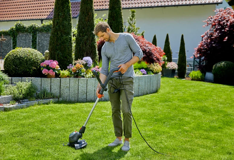 განსაკუთრებით გამოსადეგია Edging ფუნქცია, რომელიც ტრიმერის თავს 90 გრადუსით ატრიალებს, რათა მარტივად მოჭრათ ბალახი გაზონის კიდეებზე. გარდა ამისა, არ დაგჭირდებათ მცენარეების დაზიანებაზე დარდი – მცენარეთა დამცავი რგოლი ეფექტურად იცავს კიდეებთან ახლოს მყოფ ყვავილებს და მცენარეებს (ასევე შესაძლებელია მისი მოხსნა).