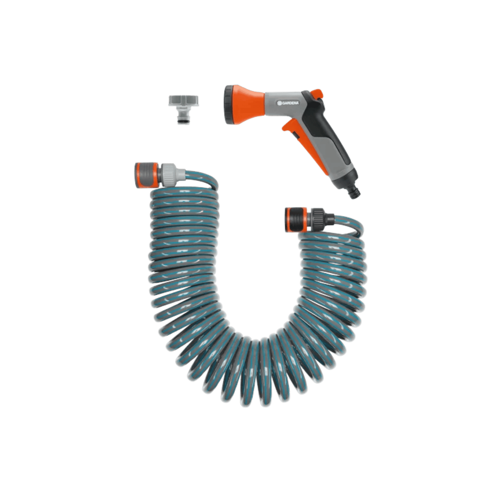 შლანგის კომპლექტი ხვეული არის მოსახერხებელი გადაწყვეტა აივნებზე, ტერასებზე და მცირე ბაღებში მცენარეების მოსარწყავად. გამოყენების შემდეგ შლანგი ავტომატურად იხვევა და მინიმალურ ზომამდე მცირდება, ამიტომ მისი ხელით დახვევა აღარ არის საჭირო. ის იდეალურია მცირე სივრცეებში მორწყვისთვის. კომპლექტში შემავალი სარწყავი პისტოლეტი კომფორტულად თავსდება ხელში, წყლის ნაკადის რეგულირება შესაძლებელია შეუფერხებლად, ხოლო სურვილის შემთხვევაში ტრიგერის დაფიქსირებაც შეიძლება.