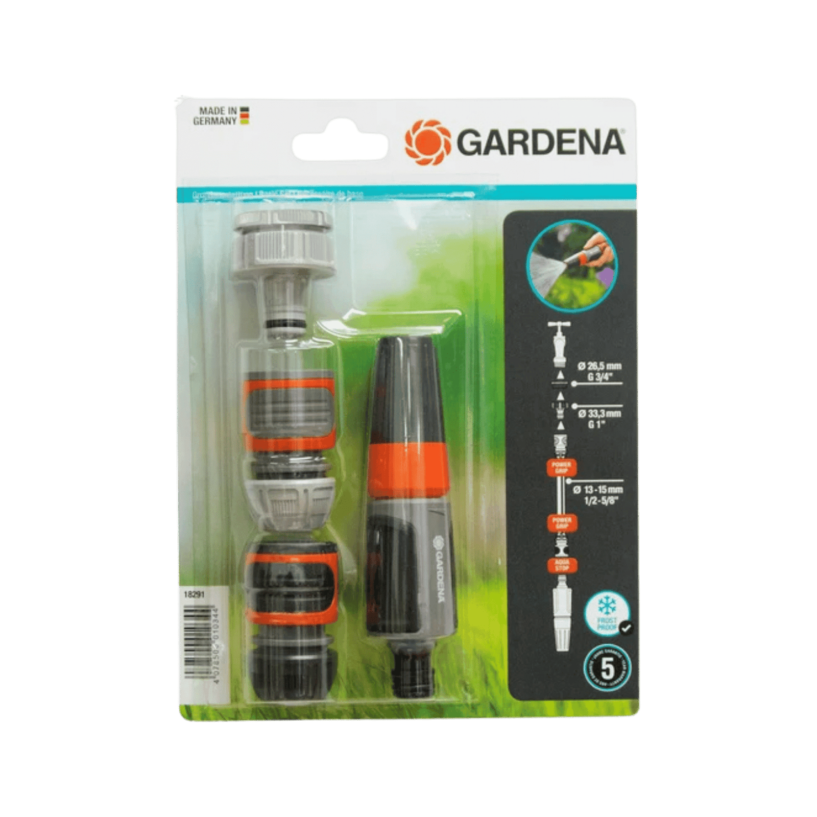 GARDENA-ს საბაზისო ნაკრები დაგეხმარებათ თქვენი სახლისა და ბაღის დასუფთავებასა და მორწყვაში.სასტარტო ნაკრები, რომელიც მოიცავს საწმენდ თავაკს, ონკანის შემაერთებელს, ადაპტერს, შლანგის შემაერთებელს და Aqua Stop-ს, უზრუნველყოფს თქვენი ბაღის შლანგსა და ონკანს შორის უსაფრთხო კავშირს. ყველა კომპონენტი შექმნილია ხანგრძლივი მომსახურების ვადის უზრუნველსაყოფად. დიზაინი საბაზისო კომპლექტს ელეგანტურ და უცვლელ იერს სძენს, რომელიც იდეალურია თქვენი ბაღის ან ტერასისთვის. 2-1-ში შესასხურებელი თავაკი უზრუნველყოფს იდეალურ წყლის ნაკადს სხვადასხვა დანიშნულებით – იქნება ეს ჭავლური, ჭავლის გამოყენება დასუფთავებისთვის თუ უფრო რბილი ნისლი მორწყვისთვის – შესხურების სიძლიერე შეუფერხებლად რეგულირდება. მოყვება Aqua Stop-ი საშუალებას გაძლევთ, შესხურების თავაკებიდან შესასხურებელ ღეროზე ან სარწყავზე გადახვიდეთ ონკანთან ხელის მიწვდომის გარეშე.