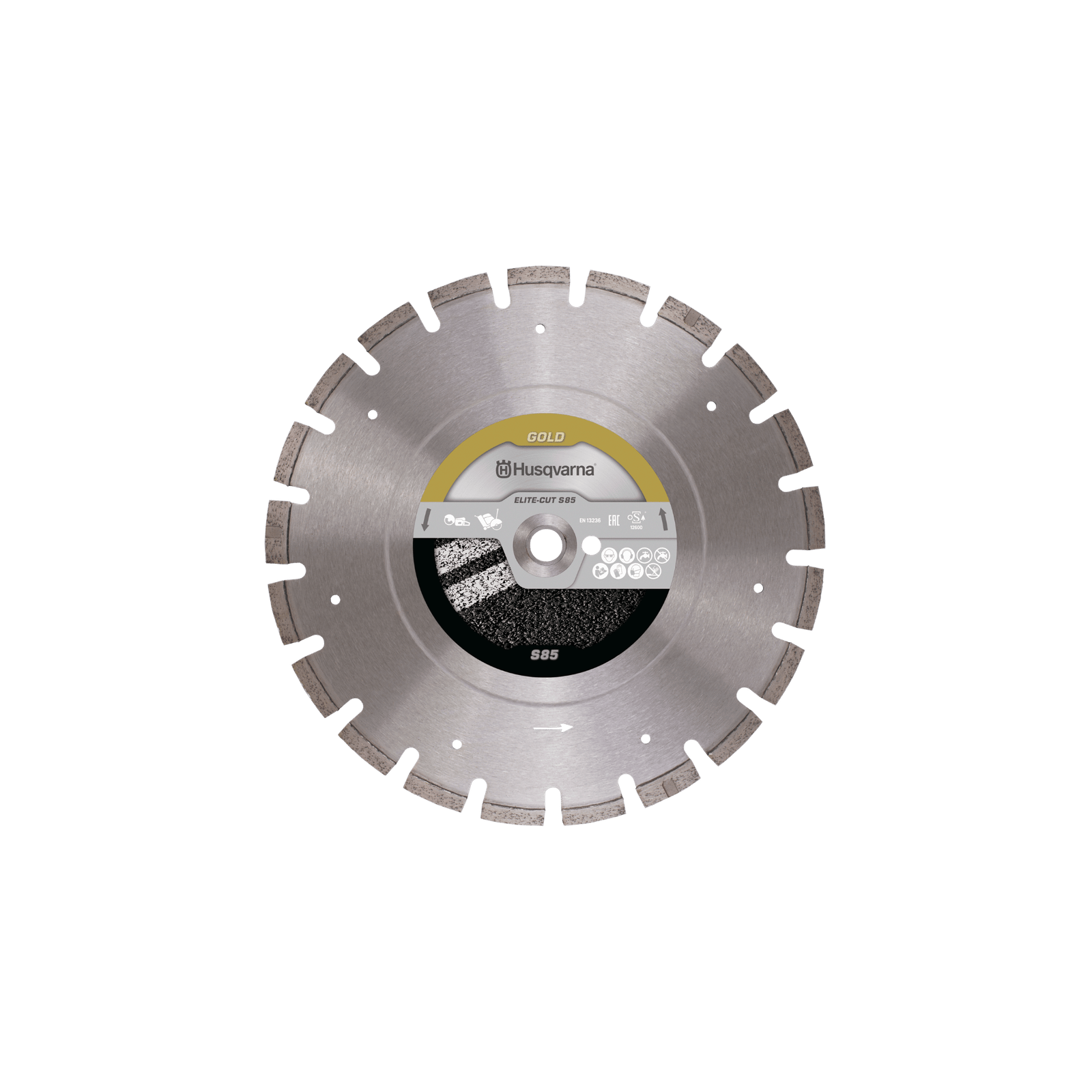 Elite-Cut™ S85, ოქროს სერიის ნაწილი, სპეციალურად შექმნილია ასფალტზე, ბეტონსა და სხვა აბრაზიულ მასალებზე ოპტიმალური ჭრისთვის. პირი აღჭურვილია დამცავი სეგმენტით, რათა თავიდან აიცილოს ჭრის შემცირება.