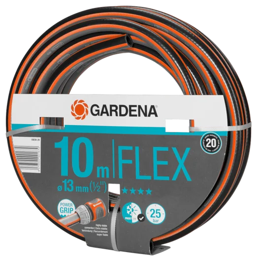 GARDENA Comfort FLEX შლანგი 13 მმ (1/2″) დიამეტრით და 10 მ სიგრძით იდეალურია მცენარეთა საიმედო მორწყვისა და ბაღის დასუფთავებისთვის. გამორჩეული სტრუქტურა უზრუნველყოფს ზომის სტაბილურობას და მოქნილობას, რაც ხელს უშლის გადახლართვასა და დაკვანძვას.