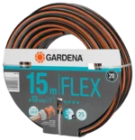 GARDENA Comfort FLEX შლანგი 13 მმ (1/2″) დიამეტრით და 15 მ სიგრძით შესაფერისია მცენარეთა საიმედო მორწყვისა და ბაღის დასუფთავებისთვის. მისი მაღალი ხარისხის სტრუქტურა უზრუნველყოფს ზომის სტაბილურობასა და მოქნილობას, რაც აბათილებს გადახლართვასა და დაკვანძვას.
