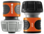 ხელსაწყოს ნაკრები ბაღის შლანგის დასაწყისსა და ბოლოში სწრაფი და მარტივი შეერთებისთვის. ნაკრებში შედის შლანგის კონექტორი, რომელიც ამარტივებს შლანგის დასაწყისზე მონტაჟს, და Water Stop – ბოლო ნაწილზე დასაკავშირებელი ადაპტერი, რომელიც წყლის ავტომატურ გამორთვას უზრუნველყოფს, როცა წყლის დანამატის შეცვლა გსურთ. კონექტორს აქვს ელასტიური რგოლი დაზიანებისგან დასაცავად და სპეციალურად ფორმირებული საშვი, რაც უზრუნველყოფს მაღალ წნევას და კარგ მოჭიდებას, თუნდაც სველი ხელებით. Water Stop-ი გამორთავს წყლის მარეგულირებელს, როცა წყლის დანამატი იცვლება, ასე რომ არ გჭირდებათ ონკანის დაკეტვა. ორივე პროდუქტი ყინვაგამძლეა, მაღალი ხარისხის, გერმანული წარმოების.