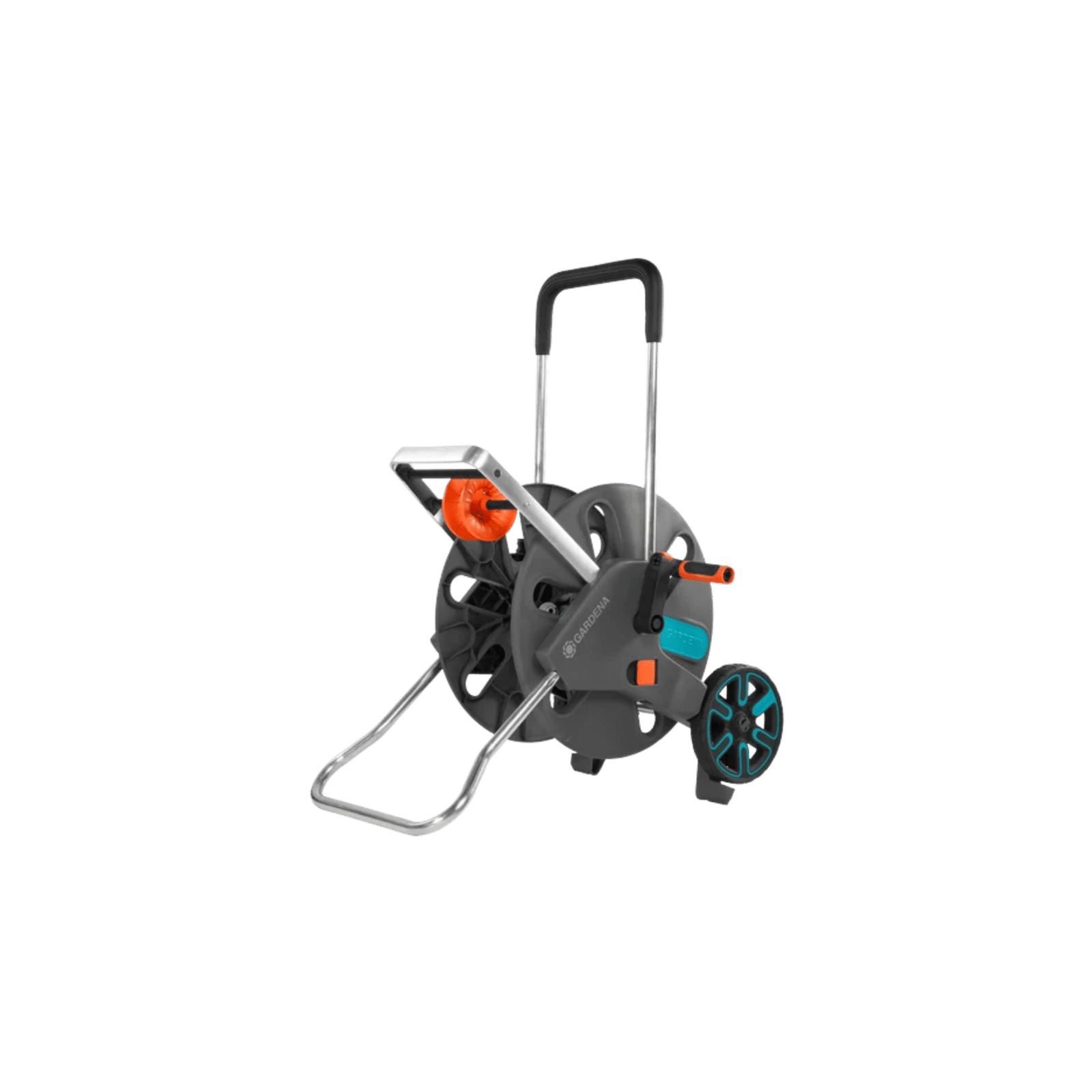 GARDENA CleverRoll L Easy შლანგის ურიკა იდეალურია შლანგის კომპაქტურად შესანახად და ბაღის მარტივი მორწყვისთვის. სპეციალური ფორმის საყრდენისა და ბორბლების სტაბილური საყრდენის წყალობით, მორწყვისას ურიკა უსაფრთხოდ დგას ბალახზე ან ტერასაზე და არ გადაბრუნდება. ადგილის დაზოგვის მიზნით, საყრდენი და სახელური იკეცება, ხოლო სახელური მარტივად ეშვება ქვემოთ.