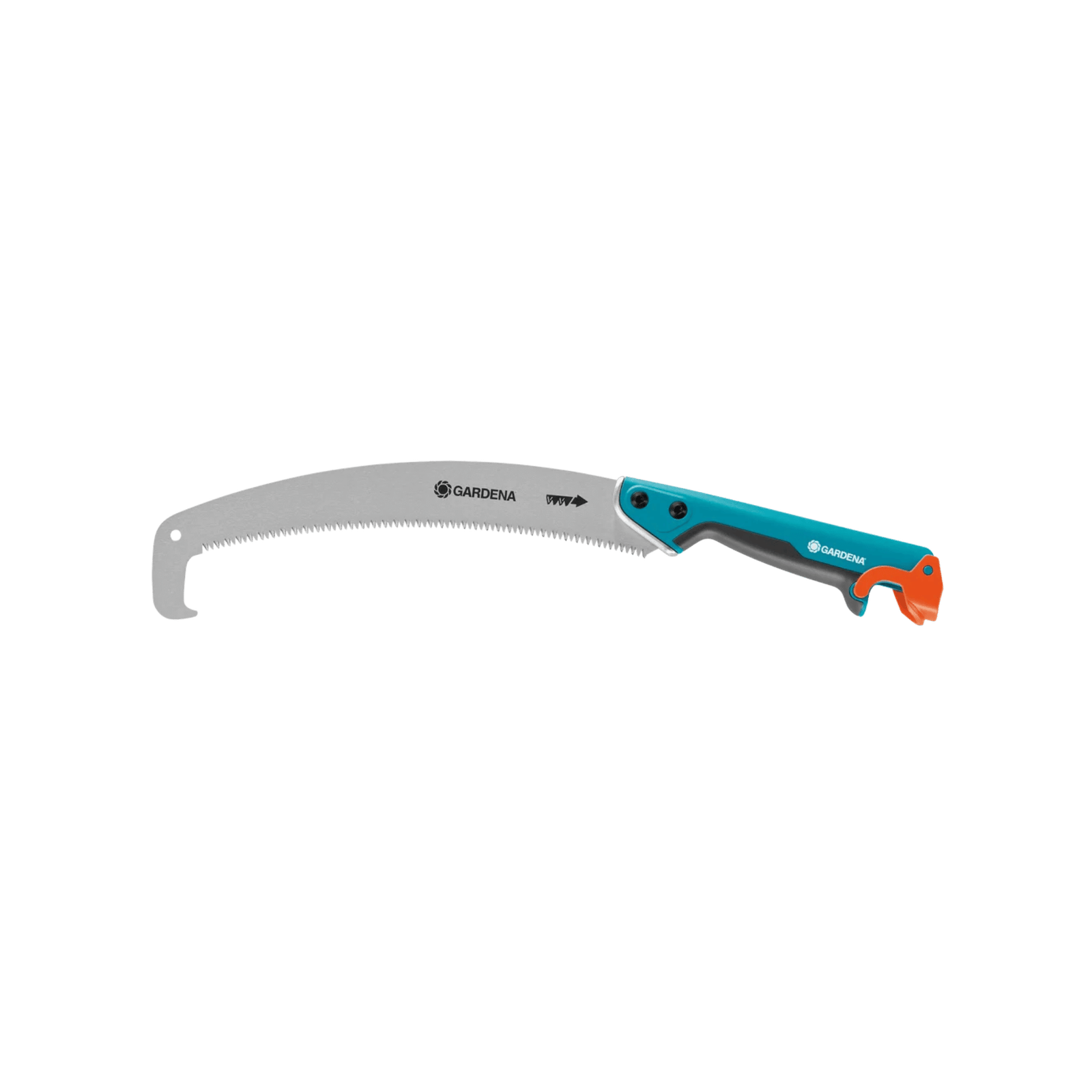 GARDENA-ს კომბინირებული სისტემის 300 P ბაღის ხერხი მოხრილი სახელურით და 300 მმ სამუშაო სიგრძით საშუალებას გაძლევთ ეფექტურად მოჭრათ ტოტები. ხერხს აქვს ზუსტი, სამმაგი დამუშავების კბილები. ეს უზრუნველყოფს ზუსტ, გლუვ ჭრას და მაღალ შესრულებას ძალისხმევის გარეშე. იმპულსურად გამაგრებული კბილები დიდი ხნის განმავლობაში ინარჩუნებს ხერხის პირის სიმკვეთრეს. პირი მყარი ქრომირებულია, რაც უზრუნველყოფს კოროზიისგან დაცვას და ხანგრძლივ მომსახურების ვადას. მოხრილი ხერხის პირის ბოლოში ინტეგრირებული კაუჭი ხელს უწყობს დაჭრილი ტოტების მოცილებას. ის ასევე ხელს უშლის ხერხის სრიალს და აადვილებს ჭრას. რბილი სახელურის ელემენტები ინტეგრირებულია ერგონომიულ სახელურში. სახელურის ბოლოში არსებულ საკეტთან ერთად, ხერხი საიმედოდ და კომფორტულად ჯდება თქვენს ხელში. GARDENA-ს კომბინირებული სისტემის საშუალებით შეგიძლიათ გააერთიანოთ ხელის ხერხი ტელესკოპურ სახელურთან, რომელიც ცალკე იყიდება. ეს საშუალებას გაძლევთ მიაღწიოთ ხის წვერებს და უსაფრთხოდ მოჭრათ ისინი რხევის გარეშე. დამზადებულია გერმანიაში.