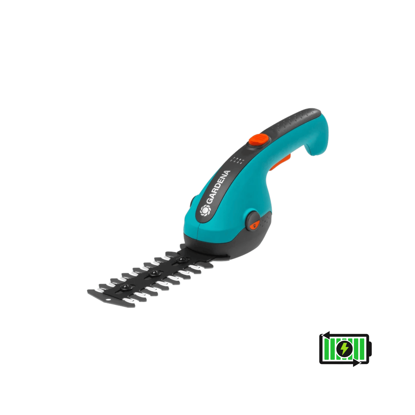 GARDENA Battery Grass and Shrub Shears ClassicCut Li საშუალებას გაძლევთ ზუსტად გაჭრათ ბალახის კიდეები და მოაწყოთ ბუჩქები და პატარა ღობეები იდეალურად. კომპლექტში შედის 8 სმ-იანი ბალახის დანა და 12 სმ-იანი ბუჩქის დანა.