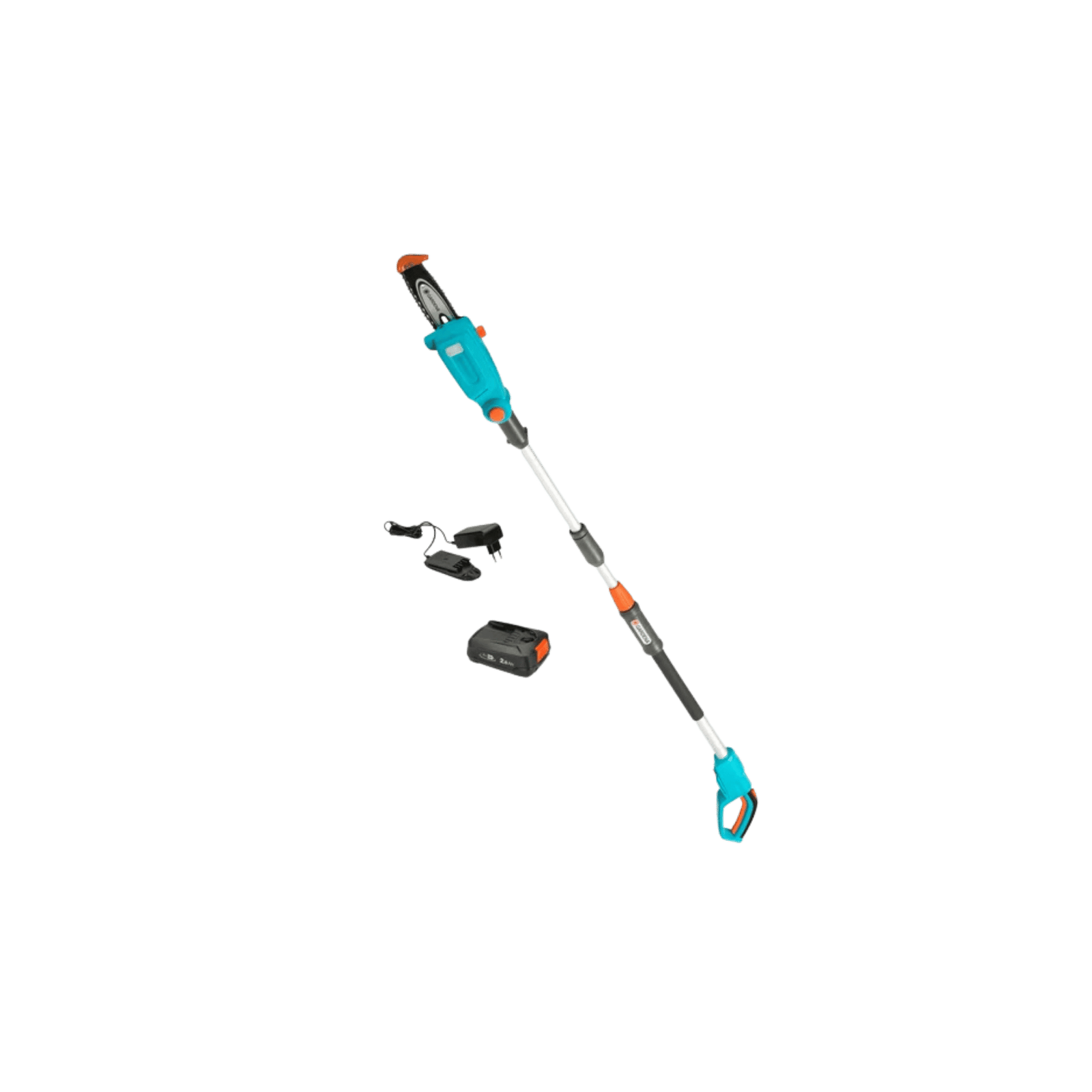 GARDENA ელემენტიანი ტელესკოპური ხერხი TCS 20/18V P4A საშუალებას გაძლევთ მარტივად ჭრათ ტოტები 4 მეტრის სიმაღლეზე კიბის გარეშე.