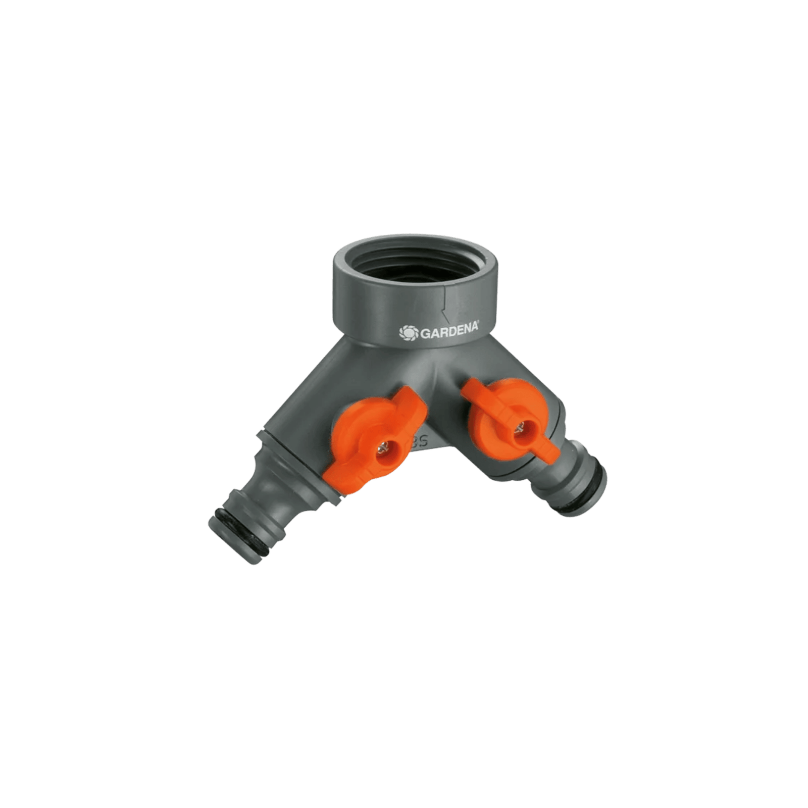 ორი ერთის ფასად: GARDENA-ს ორმაგი ონკანის შემაერთებლით, თქვენს ონკანს საკმარისი ადგილი აქვს ორი შლანგის შესაერთებლისთვის. ეს წყლის გამანაწილებელი საშუალებას გაძლევთ ერთდროულად მორწყათ თქვენი ბაღის ორი ნაწილი. როდესაც ერთი შლანგით რწყავთ ყვავილების გაშენებას, სარწყავს მეორეთი შეუძლია ბალახის მორწყვა. გარდა ამისა, წყლის ნაკადის რეგულირება შესაძლებელია ორივე გამოსასვლელზე უსასრულოდ. თითოეულ გამოსასვლელს აქვს საკუთარი ნაკადის რეგულატორი, რაც საშუალებას გაძლევთ დამოუკიდებლად აკონტროლოთ თითოეული შეერთება. GARDENA-ს ორმაგი ონკანის შემაერთებელი ერგება 26.5 მმ (G 3/4″) ხრახნიანი ონკანებს. დამზადებულია გერმანიაში.