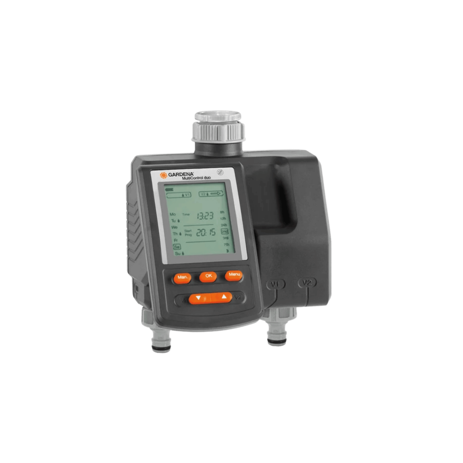 კომოლექტაციაში არ შედის: ელემენტი მოსახერხებელი მოდელია ბაღის ორი უბნის ავტომატური მორწყვისთვის. დიდი ეკრანი მარტივია პროგრამირებისთვის. ასევე პანელის განცალკევება შესაძლებელია მარტივი პროგრამირებისთვის. თითოეული გამომუშავება შეიძლება დაპროგრამდეს დღეში 3 – მდე მორწყვის ციკლით. მორწყვის დრო შეიძლება დაყენდეს 1 წუთიდან 3 საათამდე 59 წუთამდე. მორწყვის დღეების თავისუფლად შერჩევა შესაძლებელია. თითოეული გასასვლელი შეიძლება იყოს დაკავშირებული GARDENA წვიმის სენსორთან ან ნიადაგის ტენიანობის სენსორთან. ორივე გამომავალი კონტროლირებადია სენსორით. შესაძლებელია ავტომატური მუშაობის უზრუნველყოფა ღამით ნიადაგის ტენიანობის სენსორის გამოყენებით. დაახლოებით 1 წელი შეგიძლიათ გამოიყენოთ ერთი 9V ტუტე ელემენტი. (არ შედის). ელემენტის დონის მაჩვენებლით.